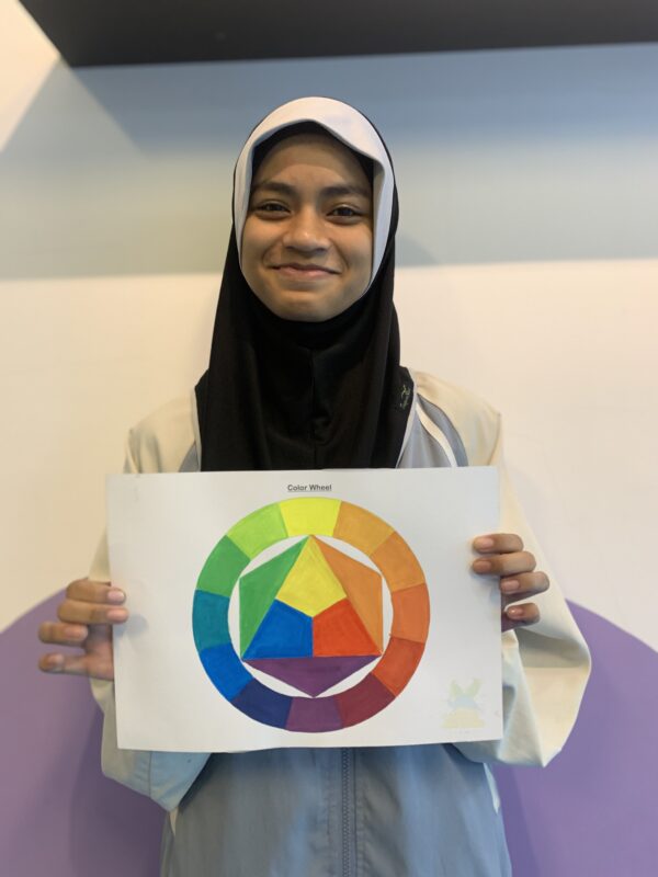 Pelajar diajar teknik mengendalikan warna air, berus, dan teknik campuran warna yang betul.