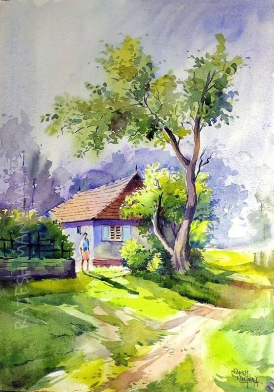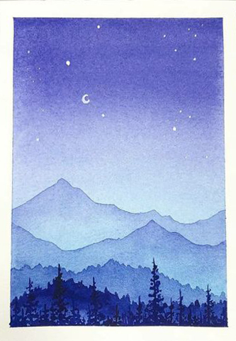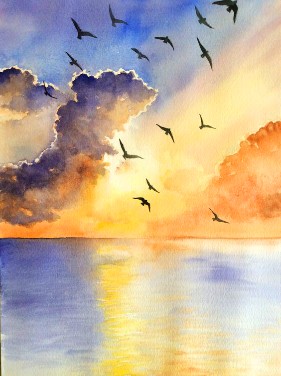 Pelajar diajar teknik mengendalikan warna air, berus dan teknik campuran warna yang betul.