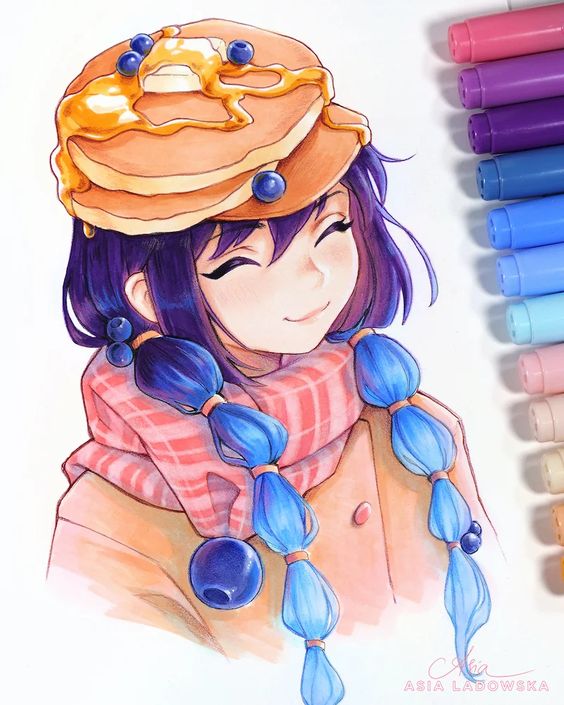 Pelajar diajar teknik mewarna kartun yang dilukis dengan betul, menggunakan medium pen maker.